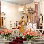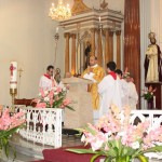 La solmene Eucaristía fue presidida por el P. Guido Villalta, Vicario General de la Arquidiócesis de San José, estuvo concelebrada por un numeroso grupos de sacerdotes y tuvo la presencia de dos diácono, uno de ellos de los Heraldos del Evangelio.