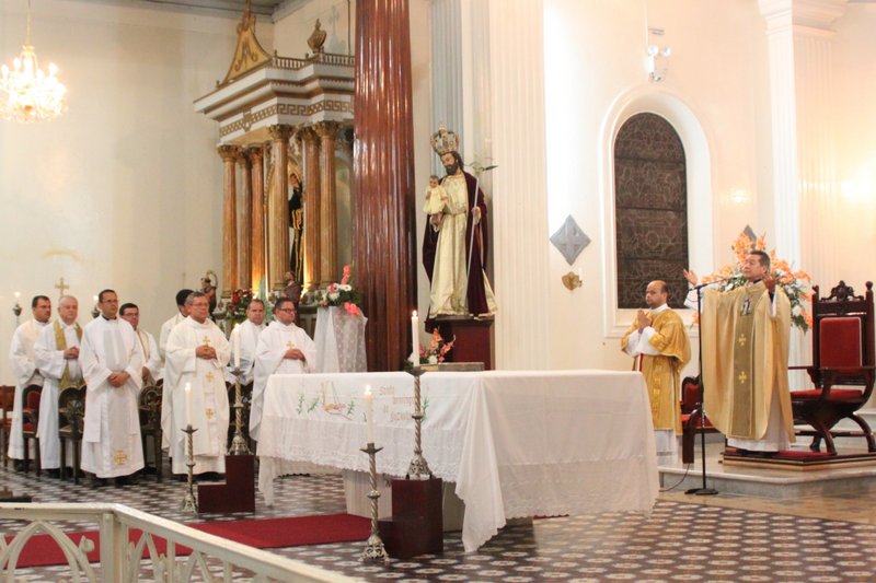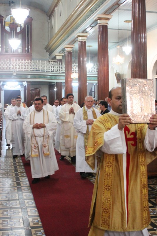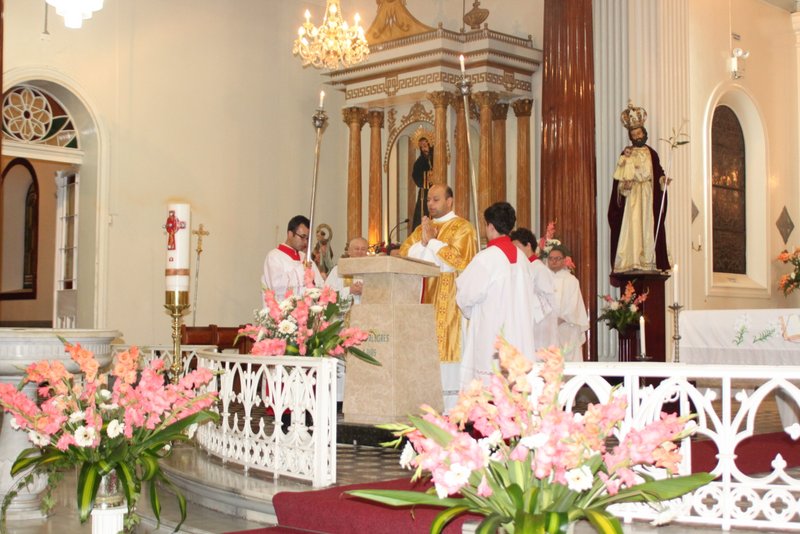 La solmene Eucaristía fue presidida por el P. Guido Villalta, Vicario General de la Arquidiócesis de San José, estuvo concelebrada por un numeroso grupos de sacerdotes y tuvo la presencia de dos diácono, uno de ellos de los Heraldos del Evangelio.