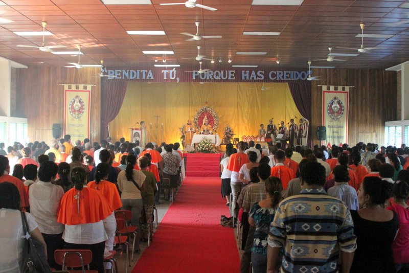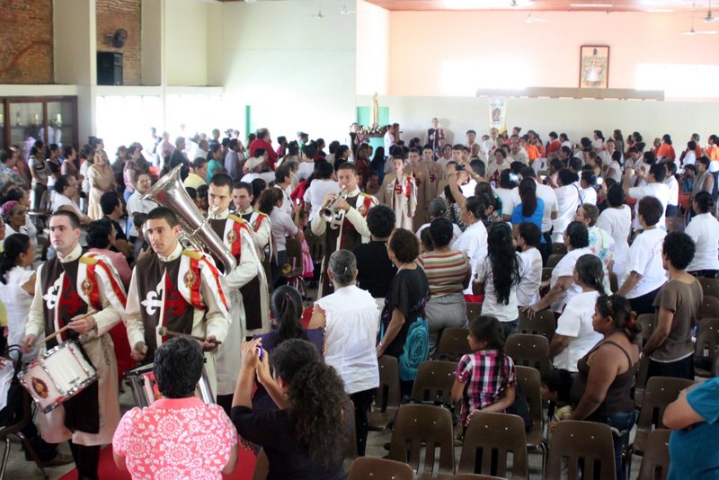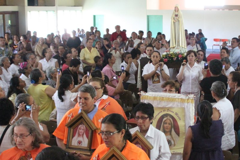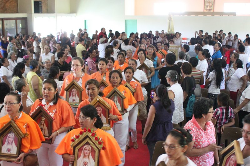 Llegaron familias de varias Parroquias de Managua, así como de León, Boaco y Tipitapa. La entrada de la Peregrina fue muy emocionante, con coronación solemne, acompañada por los toques de trompeta, característicos de estas ocasiones.