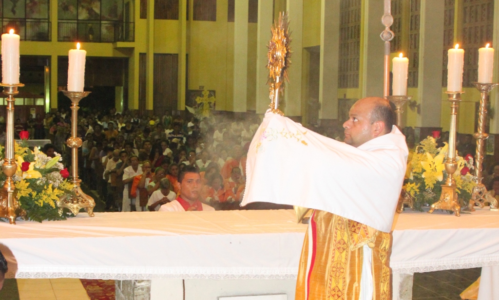 La procesión con el Santísimo Sacramento por las naves estuvo revestida también de mucha solemnidad, y culminó con la bendición.