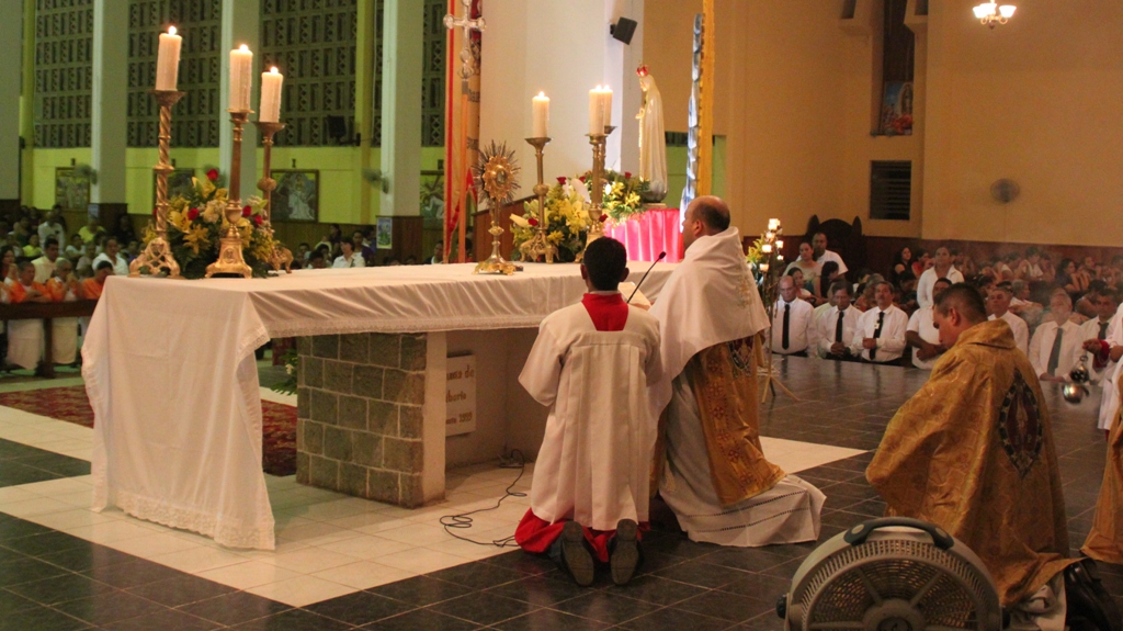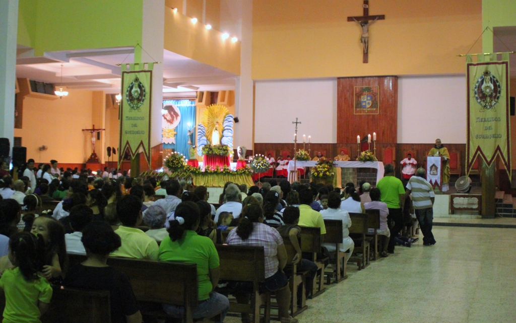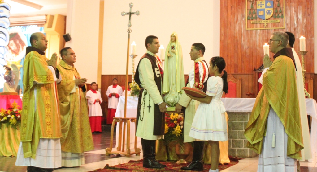 Después de la coronación, solemnizada por el Coro de los Heraldos en Costa Rica, la Imagen Peregrina fue colocada en un artístico altar.