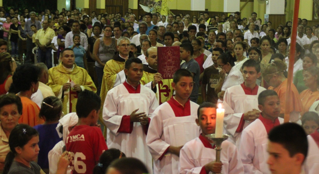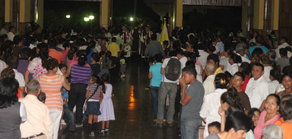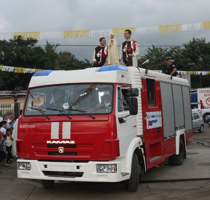 El número de personas que querían acompañar a la Virgen caminando por las calles era tal, que se tuvo que improvisar la procesión con la feligresía de a pie también, encabezada por el P. Yalmer Antonio Aragón Martínez, Rector de la Santa Iglesia Catedral de Juigalpa.