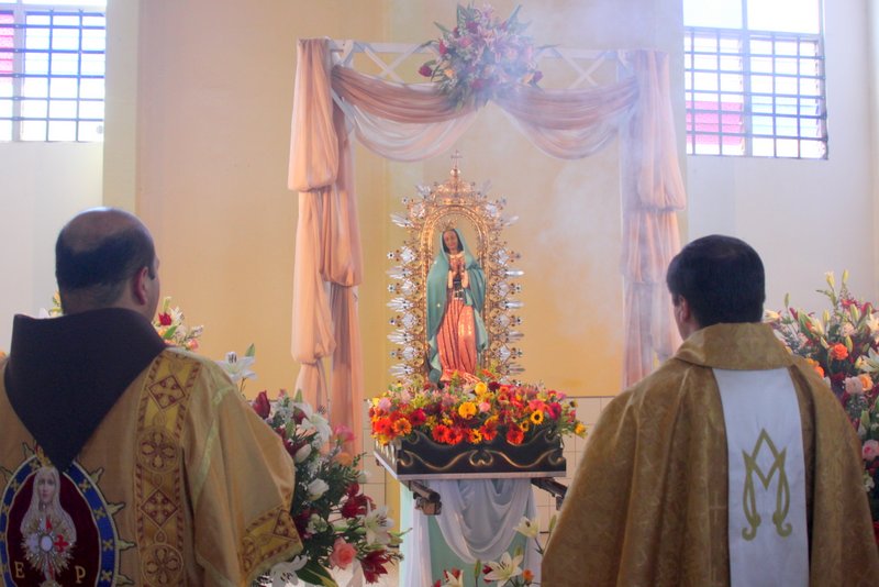 Posteriormente se realizó una procesión con la imagen de la Virgen de Guadalupe, que recorrió las calles aledañas al templo y fue acompañada por una gran cantidad de fieles.