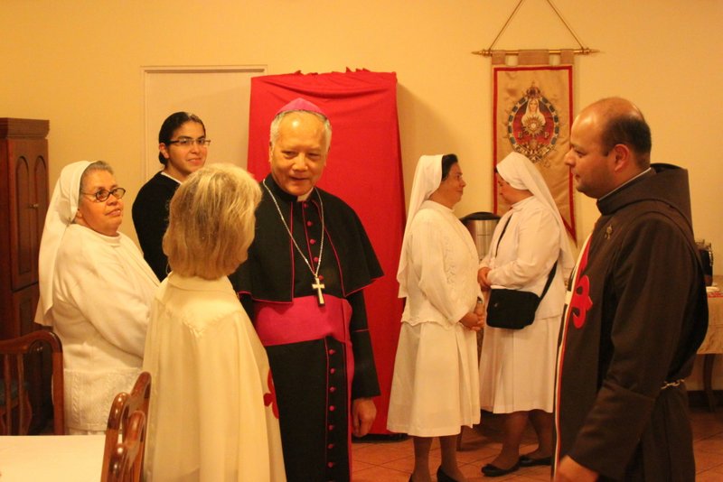 Además del Sr Nuncio Apostólico, estuvieron presentes el P. Mauricio Solano (párroco de Moravia), el P. Felipe Troya y el P. Dionisio Oramas. También hubo una numerosa representación de las comunidades religiosas vecinas, entre ellas: las Hermanas Clarisas, las Siervas de María y las Oblatas al Divino Amor. Al finalizar la presentación del Portal, se realizó la bendición y posteriormente se ofreció a los asistentes un sabroso refrigerio.