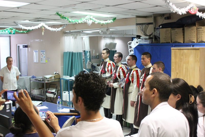 El jueves 6 de diciembre los Heraldos del Evangelio visitaron el Hospital México –uno de los mayores hospitales de la ciudad de San José– y ofrecieron un recital de villancicos en los pasillos del área de consulta externa. Posteriormente recorrieron otros sectores del Hospital llevando la imagen del Niño Jesús, para que fuese venerada por los pacientes que se encontraba allí internados, llevando por todas partes las alegría de la Navidad con el canto de villancicos populares. El P. José Joaquín Chávez,