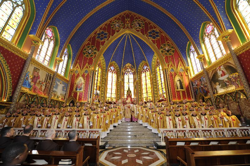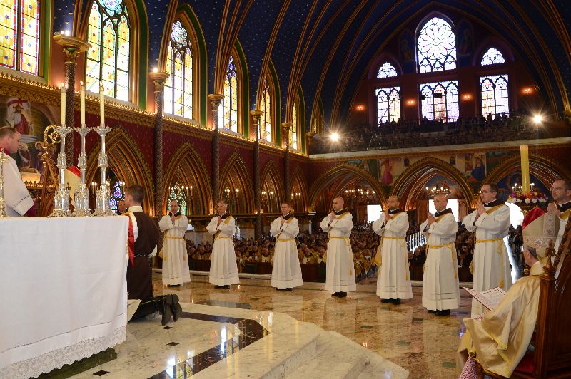 La ceremonia se llevó a cabo en la Basílica de Nuestra Señora del Rosario, que se encuentra en el seminario de los Heraldos y fue presidida por Mons. Benedito Beni dos Santos, Obispo Diocesano de Lorena (São Paulo-Brasil), quien es el Supervisor General de Formación de los Heraldos del Evangelio.