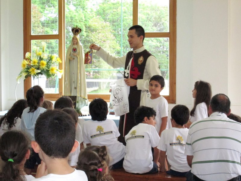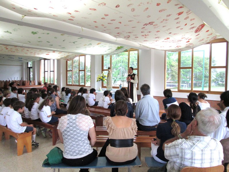 El pasado martes 28 de mayo los Heraldos del Evangelio visitaron el colegio Europeo, ubicado en San Pablo de Heredia. Participaron los niños de catequesis para primera comunión, padres de familia y profesoras. Se realizó una charla mariana, rezo del Rosario y un sorteo de regalos.