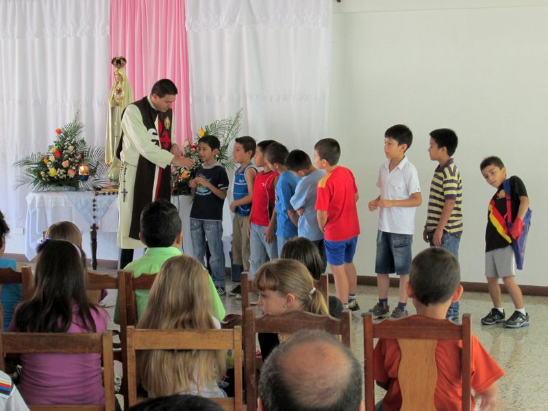 Los niños de la catequesis de Primera Comunión de la parroquia de Tres Ríos, recibieron una hermosa visita el pasado sábado 11 de mayo, La imagen peregrina de Nuestra Señora de Fátima.