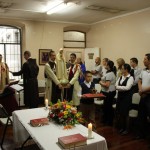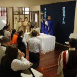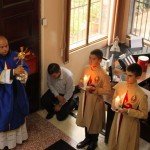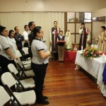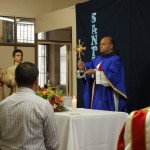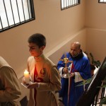 El P. Andy Rodríguez, EP, celebró la Santa Misa, que estuvo acompañada por los cantos del coro de los Heraldos del Evangelio. Posteriormente se realizó una pequeña procesión con el Santísimo Sacramento, que recorrió las todas instalaciones.