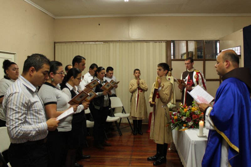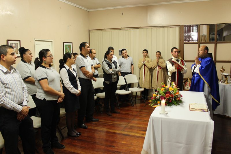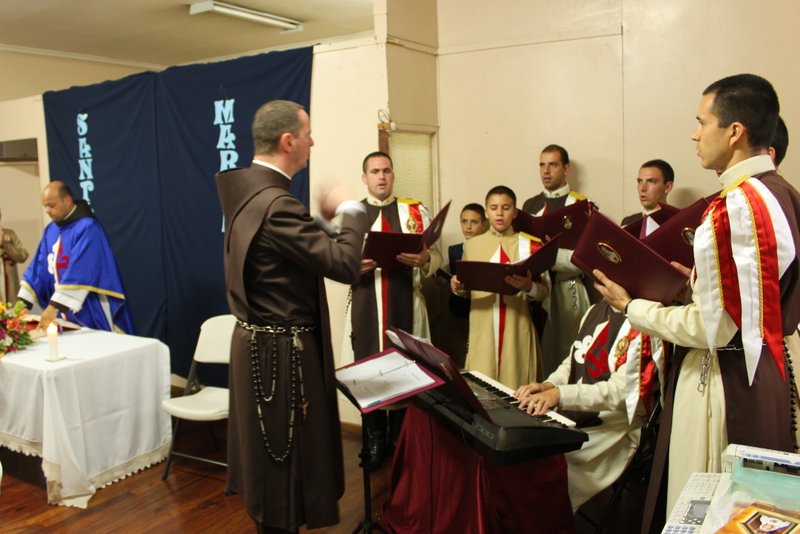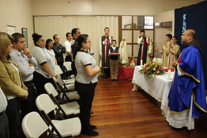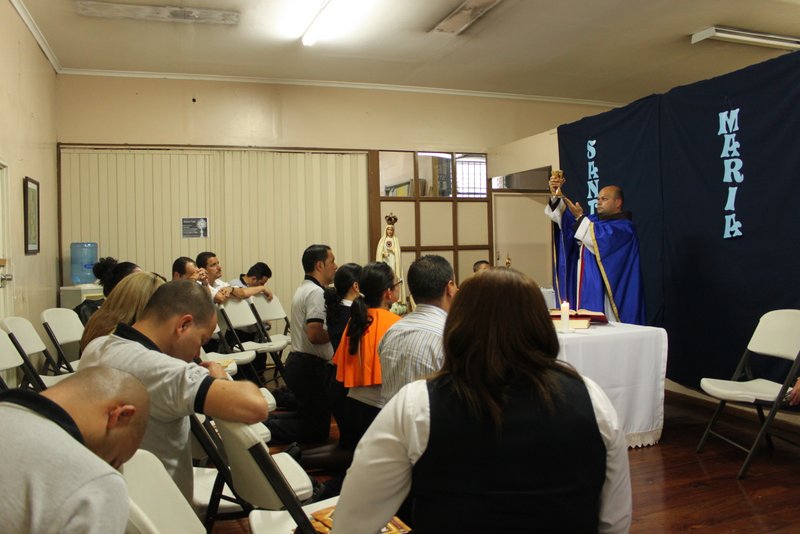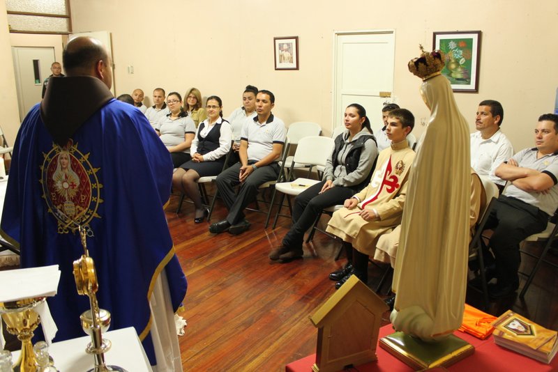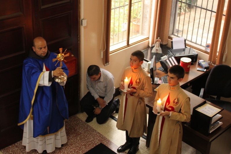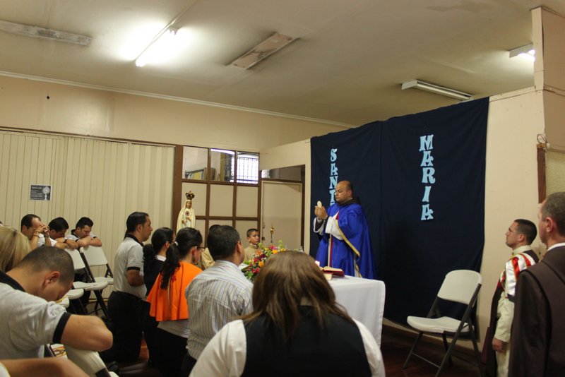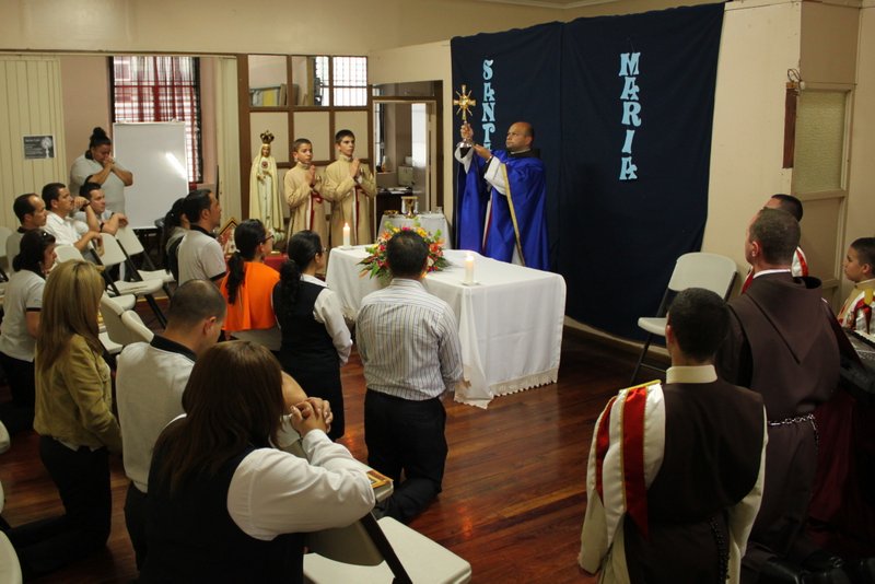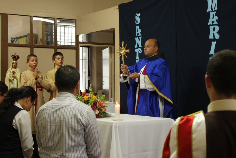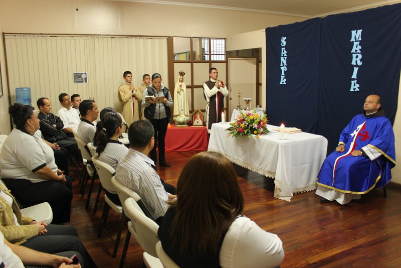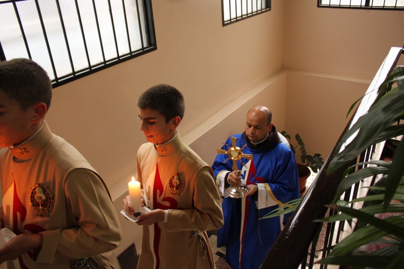 El P. Andy Rodríguez, EP, celebró la Santa Misa, que estuvo acompañada por los cantos del coro de los Heraldos del Evangelio. Posteriormente se realizó una pequeña procesión con el Santísimo Sacramento, que recorrió las todas instalaciones.