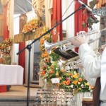 El padre David Chaverri agradeció la participación delos Heraldos en la celebraciones en honor de la Patrona, Nuestra Señora de las Mercedes, y felicitó diciendo que “con esas músicas nos sentimos como en el cielo”.