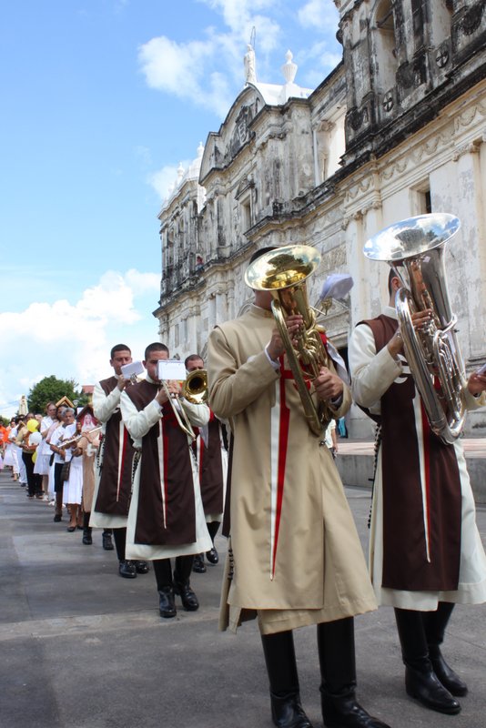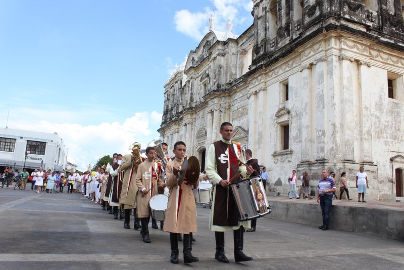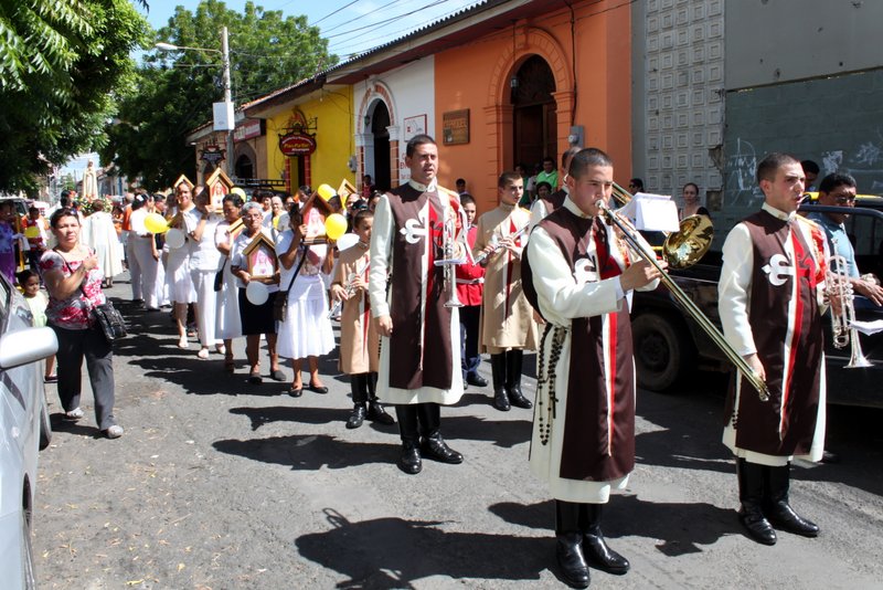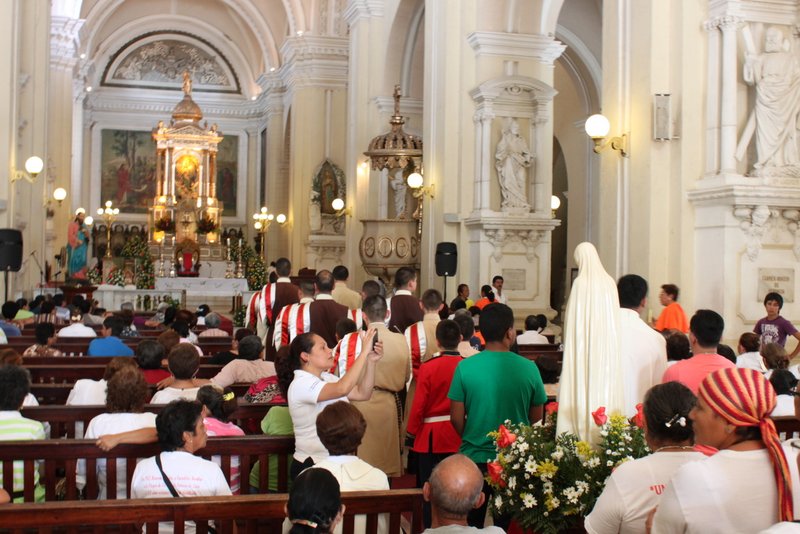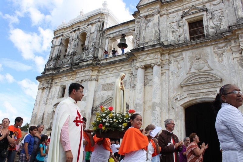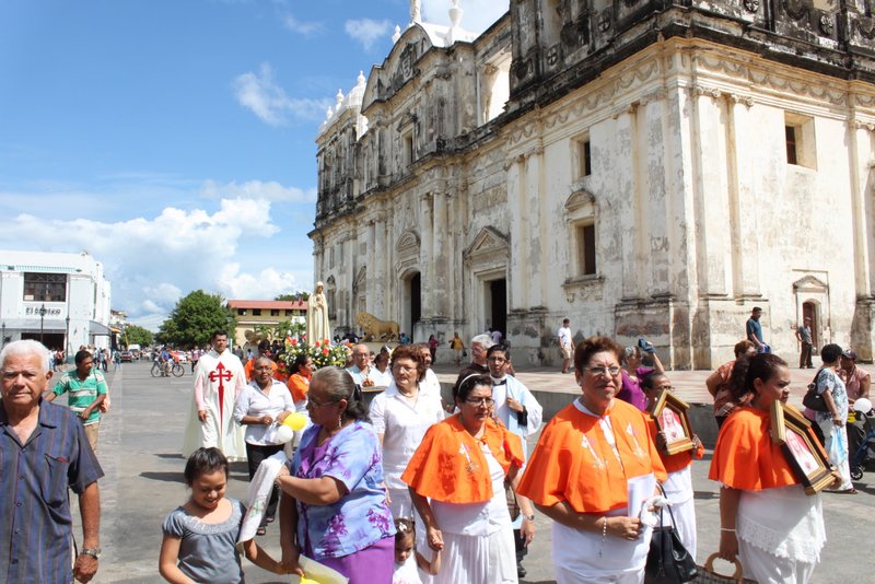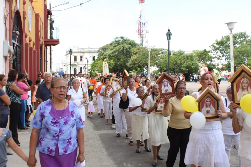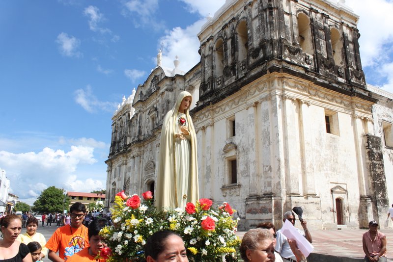 Por las calles de León hubo una procesión con la Imagen Peregrina, pasando frente a la histórica Catedral, dirigiéndose al Colegio Tridentino San Ramón donde se realizó “Un Día con María”, contando con la presencia de participantes del apostolado del Oratorio procedentesde varias Parroquias. El rezo del Santo Rosario, las charlas de formación y un pintoresco teatro fueron seguidos con gran interés.