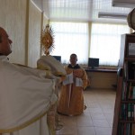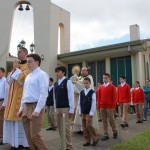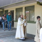 Luego de la Misa, se efectuó una solemne procesión Eucarística, consagrando al Señor Sacramentado todas las labores de este centro educativo. En cada aula se impartió la bendición, mientras las banda de los Heraldos del Evangelio acompañaba con triunfales músicas esta bella ceremonia.