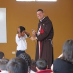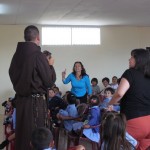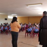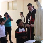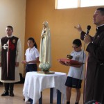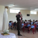 El Rvdo. Diác. Victor Jiménez explicó a los niños la importancia de la devoción a Nuestra Señora y en especial al Santo Rosario. De esta forma, motivó a los pequeños para rezar una decena en honor de María Santísima. Luego, les contó resumidamente la historia de los tres pastorcitos de Fátima y –ante las miradas curiosas de los pequeñitos- les explicó cuál es el carisma de los Heraldos y el significado del hábito que portan.