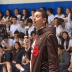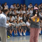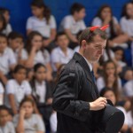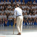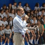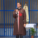 Varios alumnos se acercaron al micrófono para dar sus impresiones y explicar la moraleja de la obra de teatro, después se rezaron tres Ave Marías en honor de la Virgen y los chicos se acercaron a venerarla.