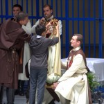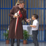 A continuación se realizó la pieza teatral “el mendigo valiente”, que narra la historia de un mendigo pobre y enfermo al cual se le aparece un extraño personaje y le ofrece sacarlo de su situación, a cambio de que reniegue de su fe.