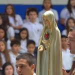 El acto comenzó con la entrada solemne de la Imagen Peregrina al gimnasio, precedida por dos alumnos que llevaban el Rosario y la corona. A seguir los mismos, que además cumplían años ese mismo día, tuvieron el honor de coronarla en representación de todo el colegio