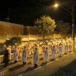 Los días fueron de mucha elevación y seriedad. Además de las reuniones y meditaciones, se hicieron cortejos con cánticos religiosos, celebraciones diarias de la Eucaristía, adoración continua al Santísimo Sacramento, rezo del Santo Rosario, y también un “Rosario Luminoso” ademas de un Via Crucis nocturno a la luz de antorchas, tal como se puede admirar en las fotos.