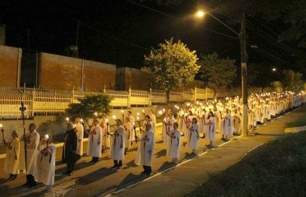 Los días fueron de mucha elevación y seriedad. Además de las reuniones y meditaciones, se hicieron cortejos con cánticos religiosos, celebraciones diarias de la Eucaristía, adoración continua al Santísimo Sacramento, rezo del Santo Rosario, y también un “Rosario Luminoso” ademas de un Via Crucis nocturno a la luz de antorchas, tal como se puede admirar en las fotos.