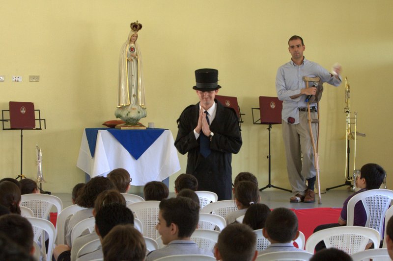Me gusta mucho la iniciativa de visitar los centros educativos y llevar el mensaje de Cristo a los más jóvenes. Me gusta mucho la preparación, presentación y formalidad con que se presentan a los chicos. De esta forma inspiran e incentivan a los chicos a seguir sus mismos pasos. La devoción por Nuestra Señora de Fátima es algo muy rescatable y necesario para nuestra Fe Católica. Los felicito por la creatividad y vocación. Dios y la Virgen sigan impulsándoles en su valiente misión! (Profª. Carolina Vásquez Campos, English) Para ver más fotos de este día, haga click aquí: