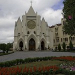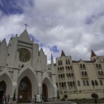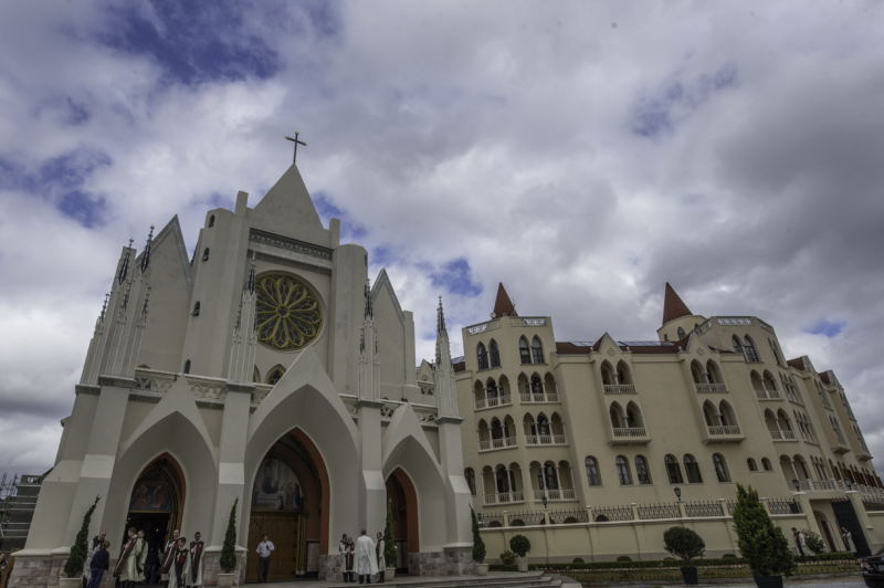 Foto de la Iglesia de Ntra. Sra. del Rosario de Fátima (izq.) y del Centro Juvenil de los Heraldos en San Pablo, Brasil.
