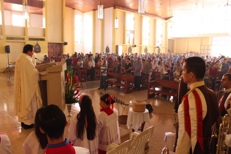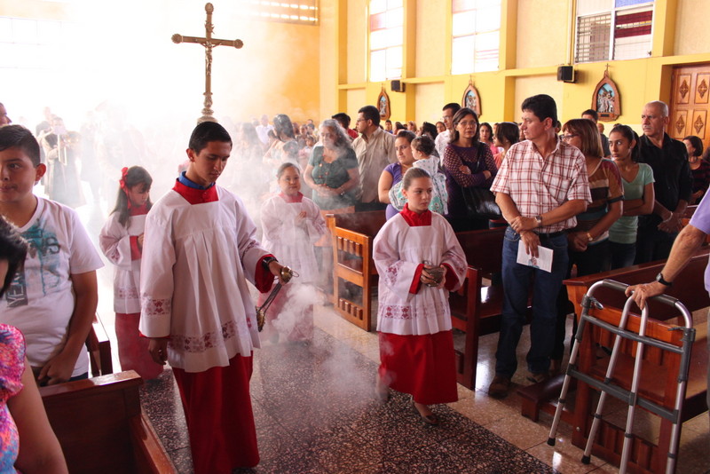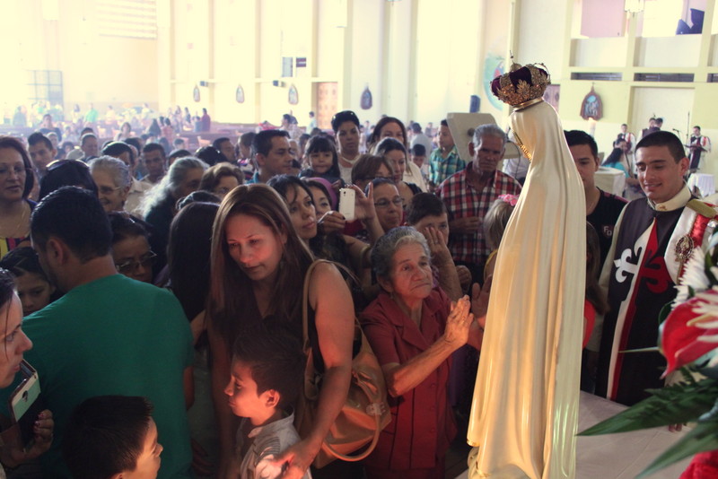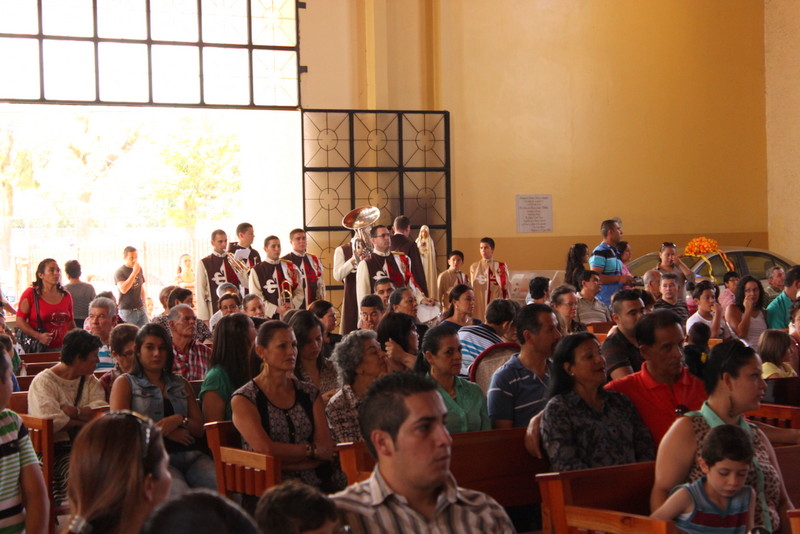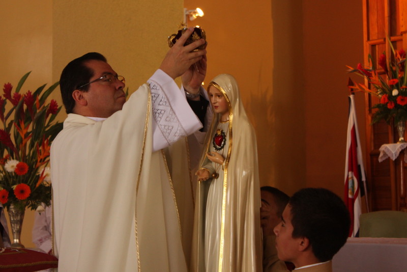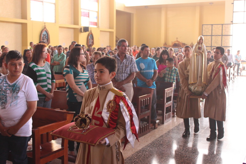 En el marco de las actividades del mes de mayo, dedicado a María Santísima, la imagen peregrina del Inmaculado Corazón María a la Parroquia de Guadalupe de Cartago, donde fue coronada solemnemente por el párroco. P Jorge Eddy Solórzano (Vicario General de la Diócesis de Cartago). Posteriormente el coro de los Heraldos solemnizó con sus cantos la Santa Misa dominical.