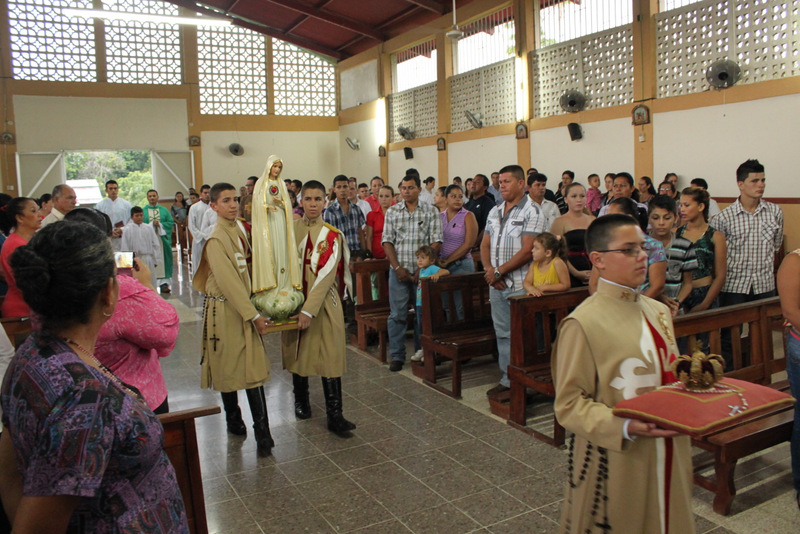 La imagen peregrina del Inmaculado Corazón de María visitó la parroquia de Nuestra Señora de los Ángeles, en Ciudad Cortés, cabecera del cantón de Osa, en la zona Sur del País. El coro y conjunto instrumental de los Heraldos del Evangelio solemnizó la Santa Misa y al finalizar, se realizó la ceremonia de coronación de la imagen de la Virgen, que emocionó profundamente a todos los asistentes.