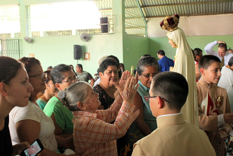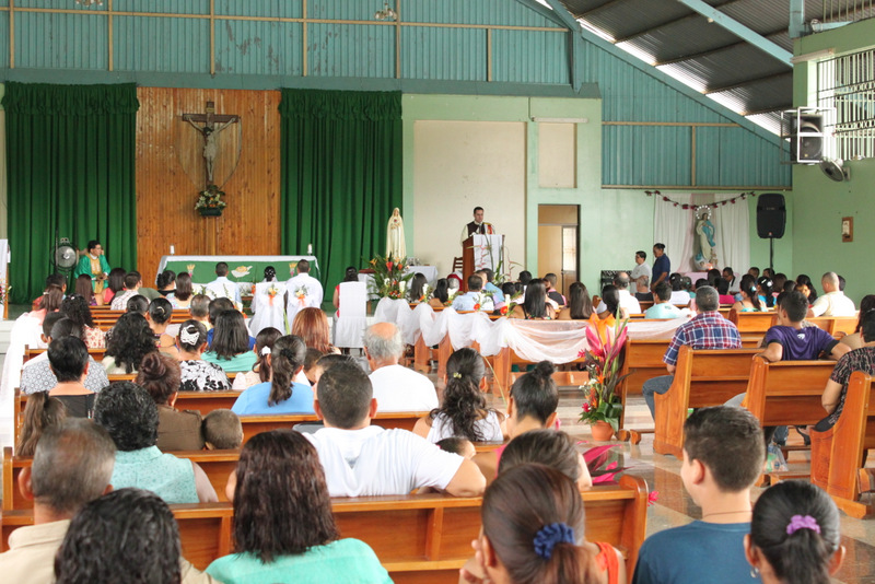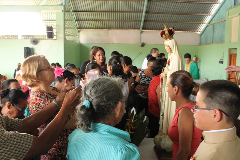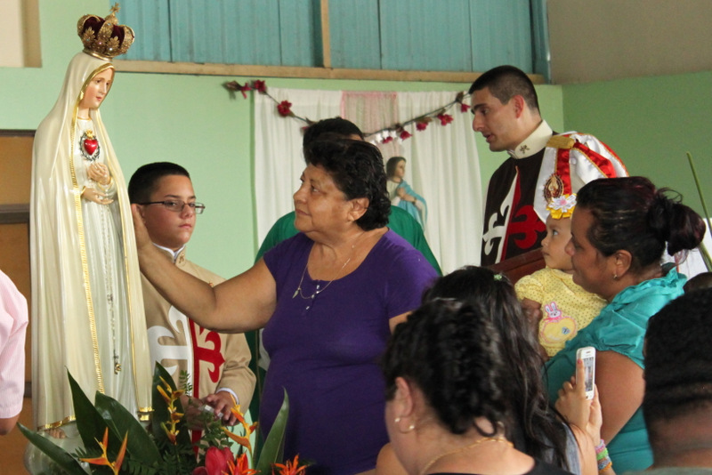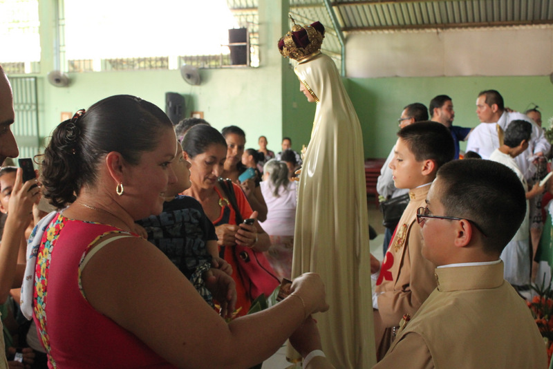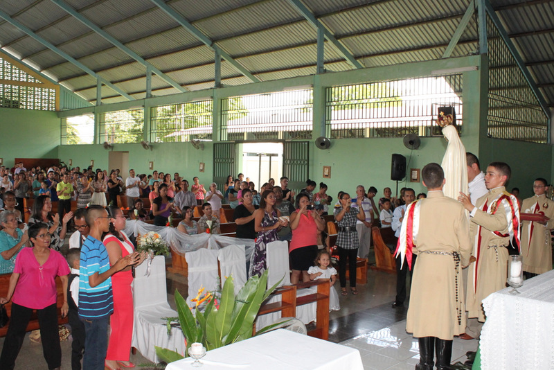 A continuación las fotografías de la visita de la Imagen Peregrina del Inmaculado Corazón de María en Parroquia del Sagrado Corazón de Jesús, ubicada en Palmar Norte. El coro de los Heraldos solemnizó las Eucaristías del sábado por la tarde y del domingo por la mañana. La imagen de la Virgen fue solemnemente coronada por el párroco de la comunidad, el Rvmo. P. Joaquín Calderón. Un numeroso grupo de fieles se acercó a venerarla al finalizar la celebración.