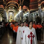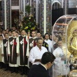Al finalizar la procesión, el P. José Francisco Arias, Rector del Santuario, recorrió la nave central de la Basílica portando en sus manos la imagen de la Virgen de los Ángeles, para que pudiera ser venerada por los devotos que allí se encontraban.