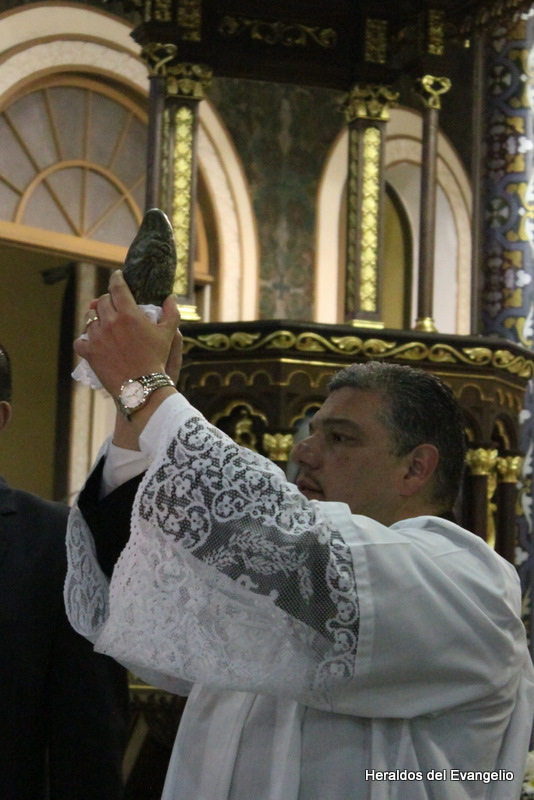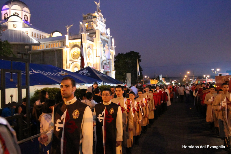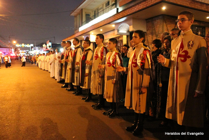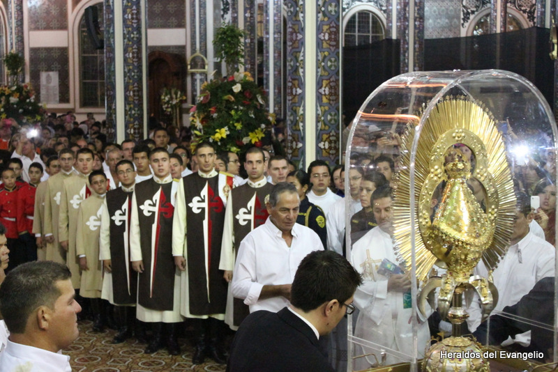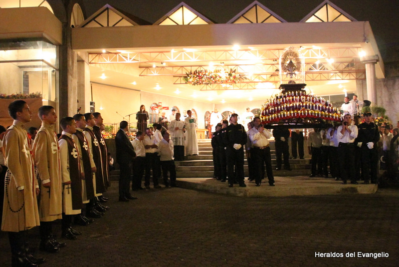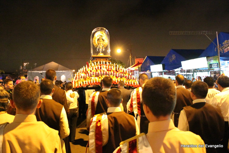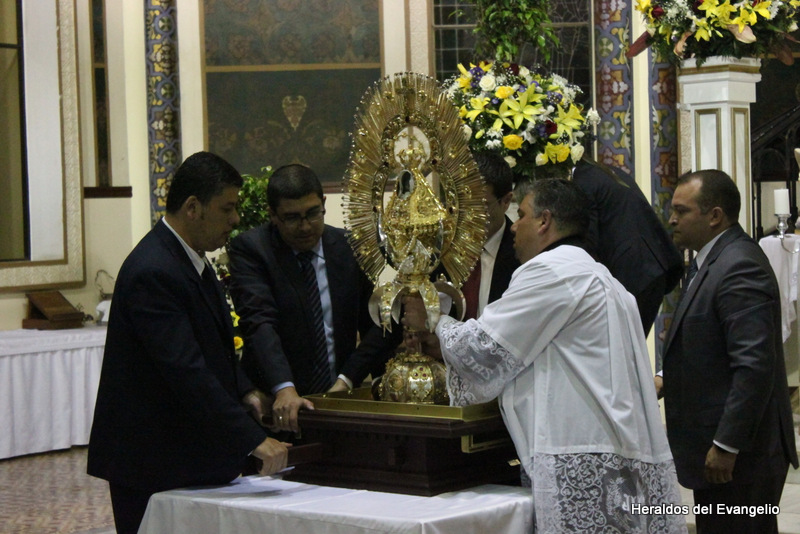 Los Heraldos del Evangelio ayudaron a custodiar la imagen de la Patrona durante todo el recorrido y tuvieron la gracia de poder contemplarla bien de cerca.
