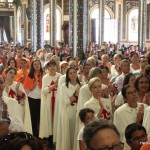 A pedido del P. José Francisco Arias Salguero, rector de la Basílica, la Santa Misa fue celebrada por el P. Andy Rodríguez, E.P. y fue solemnizada por el conjunto musical de los Heraldos del Evangelio. También acompañaron la celebración un numeroso grupo de Cooperadores de los Heraldos del Evangelio y familias consagradas a María.