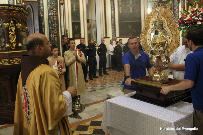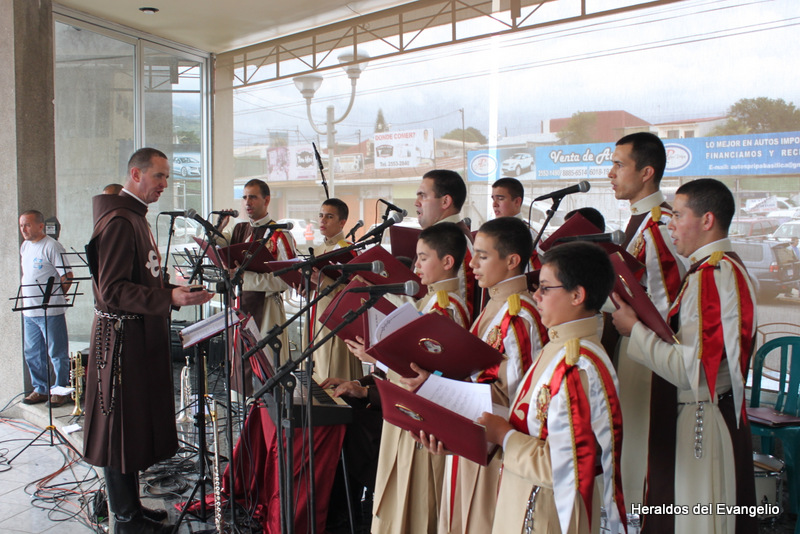 A pedido del P. José Francisco Arias Salguero, rector de la Basílica, la Santa Misa fue celebrada por el P. Andy Rodríguez, E.P. y fue solemnizada por el conjunto musical de los Heraldos del Evangelio. También acompañaron la celebración un numeroso grupo de Cooperadores de los Heraldos del Evangelio y familias consagradas a María.