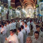 Estuvo presente el obispo de la Diócesis de Cartago, Mons. José Francisco Ulloa, numerosos seminaristas, los Heraldos del Evangelio y una multitud de fieles que acompañó con fervor el rezo de Santo Rosario durante el recorrido de “La Negrita”.