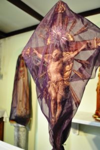 Desde la víspera del quinto domingo de Cuaresma, la Iglesia recomienda que las cruces y las imágenes sagradas se cubran con una tela morada. Ocultando la “belleza y el color de las imágenes”, la Novia de Cristo alienta a los fieles a meditar sobre el sufrimiento sufrido por el Redentor de la humanidad. El color púrpura, que también se usa en vestimentas durante todo el período de Cuaresma, recuerda el dolor y la penitencia.